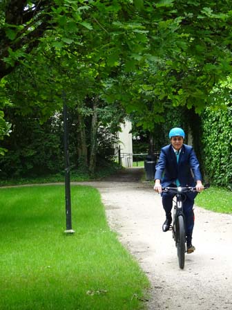 Jean Locher, Conseiller administratif à Chêne-Bougeries, a déposé ses clefs de voiture la semaine passée pour rouler en vélo électrique. Photo © Chêne-Bougeries