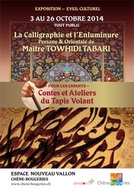 Ateliers de calligraphie dispensés par Maître Towhidi Tabari (dès 12 ans). Contes et Ateliers du Tapis Volant Tout public - Sans visite : Vendredi, mardis et jeudis, de 16h00 à 17h00