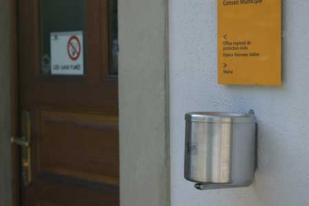 Sachant qu'un filtre de cigarette met 1 à 2 ans pour se décomposer dans la nature, et que ces détritus sont légion devant les entrées des bâtiments publics, la commune a installé un cendrier extérieur devant chaque bâtisse et invite les fumeurs à y écraser leur cigarette.
