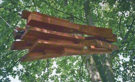 Cet automne, Gamelle, un artiste bernois est venu y suspendre une oeuvre de plus de 2 mètres, réalisée en bois noble.