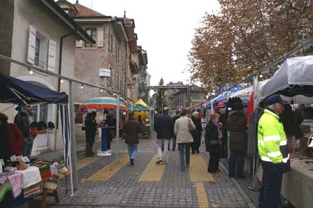 Stands d'artisanat et venue de St-Nicolas entre la rue du Gothard et la rue du Vieux-Chêne