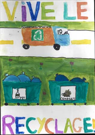 Concours de dessins : pourquoi trier les déchets? Avril 2008 Invités par la commune de Chêne-Bougeries, les enseignants et élèves des écoles de Chêne-Bougeries, du Belvédère et de Conches, ont participé à un concours de dessins destiné à afficher les préoccupations des écoliers de Chêne-Bougeries en faveur du tri sélectif des déchets. Le jury a donné sa préférence à l'affiche d'Alizée, en 3 P à l'école de Chêne-Bougeries (dessin N°1). En avant-première du mois des déchets sur le canton de Genève, son dessin composera les prochaines affiches communales de sensibilisation au tri sélectif des déchets qui orneront les véhicules communaux et s'afficheront dans les déchetteries et les écoles.