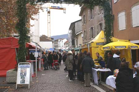 Stands d'artisanat et venue de St-Nicolas entre la rue du Gothard et la rue du Vieux-Chêne