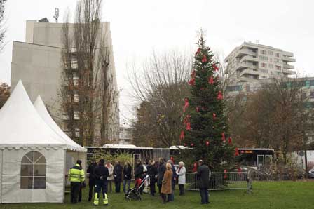 Inauguration de l'arbre de lumière du Groupe sida Genève Vendredi 28 novembre 2014 Pour marquer la Journée Mondiale de lutte contre le sida (1er décembre), la ville de Chêne-Bougeries et le Groupe sida Genève ont inauguré un arbre de Noël particulier paré du célèbre ruban rouge.