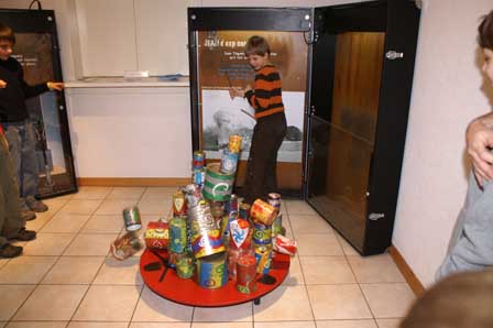 Exposition interactive pour enfants de 4 à 12 ans. Une quinzaine de valises, un vieux frigo, une projection vidéo permettent aux enfants d'entrer dans le monde insolite de Jean-Tinguely. Jeux d'eau, jeux de lumière, construction, destruction, par des manipulations les enfants découvrent l'univers de l'artiste.