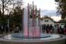 Inauguration de l'installation urbaine "Ode est où?" située au centre de la fontaine place C. Audéoud, en présence de la lauréate du concours Caroline Tapernoux et des autorités communales. Tableau d'eau et de lumières qui changent en fonction de la température.
