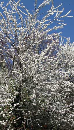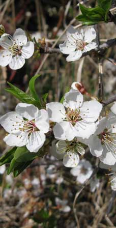 Feuille : caduque, alterne, profondément découpée de 3 à 7 lobes Fleur : blanche en bouquet en avril - mai Fruit : rouge, petit à un seul noyau Ecorce : gris brun |